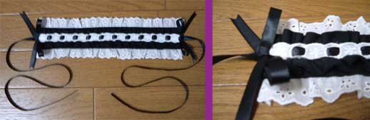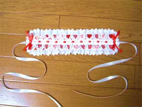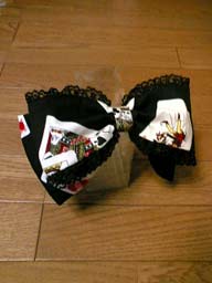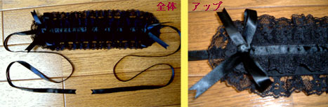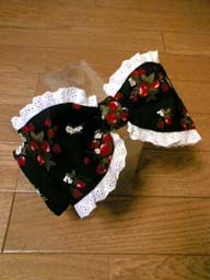 | 500円 本体長さ:29cm(レース込み) 顎リボン:黒サテン 中央リボン仕様です。 |