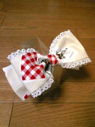 | ヘッドリボン赤白ドット柄 | 綿プリント |